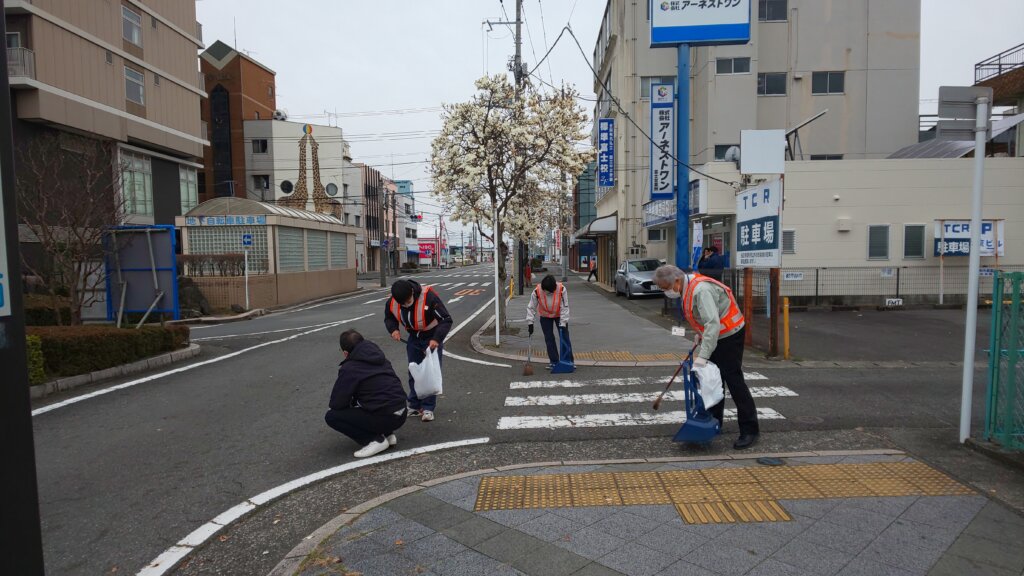 また式典後には、日頃よりお世話になっている地域への感謝の気持ちを込め、富士駅南口ロータリー周辺にて清掃奉仕活動を実施いたしました。